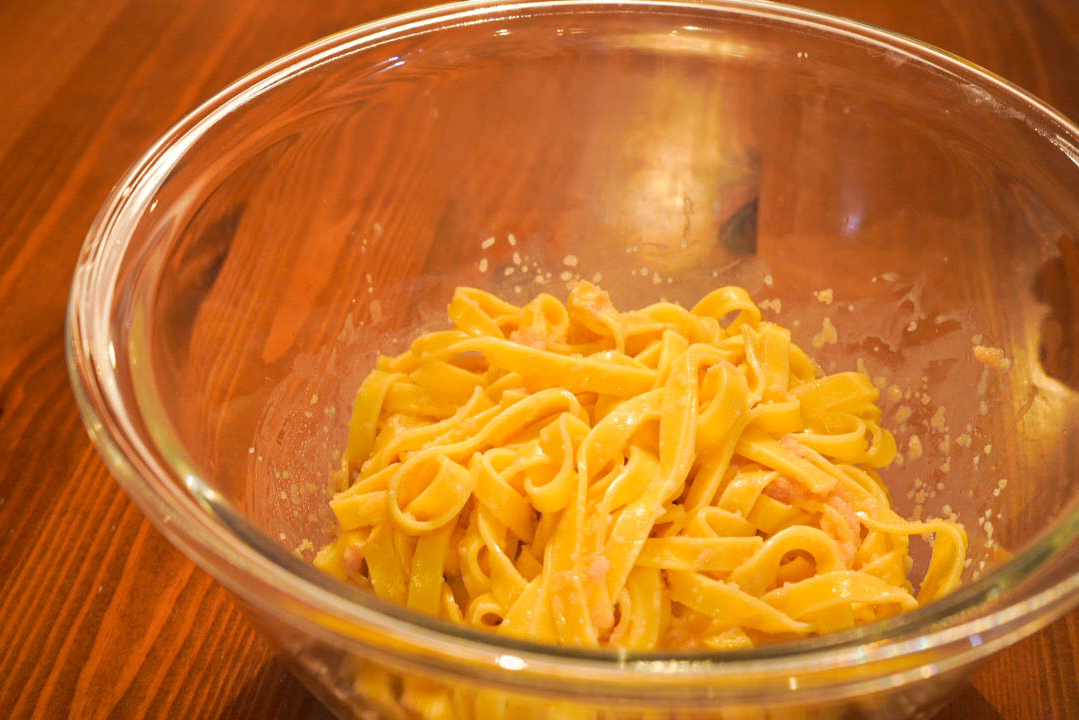 This time, we added a refined accent with salmon roe to the mentaiko spaghetti.